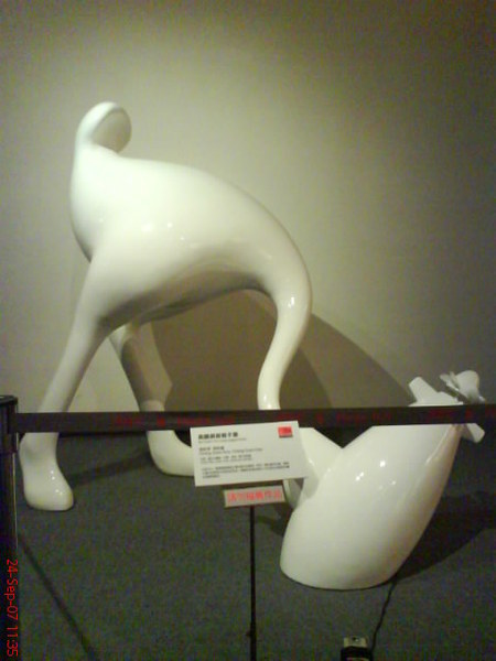 進入參觀前,外頭人潮洶湧,三輛跑車--法拉利、奧迪跟保時捷(?)定睛一看,原來是劇組外景;自行車道後的停車場,幾台大巴士,一群紅衣遊客紛紛下車,聽那口音,大概是港生來到這裡夏令營了?!這大概算是駁二展覽之外的另一場展覽吧!
